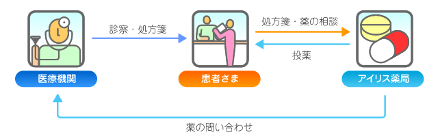日々の業務の中で、フェイス・トゥ・フェイスを基本とした信頼関係づくりを大切に考えておりますので、困ったときにも頼れる『かかりつけ薬局』として、いつでもお気軽にご相談ください。